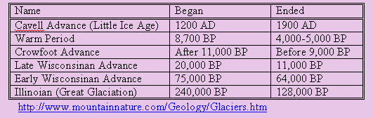 TABLE 1: Timetable of Canadian Rockies Glacial Periods