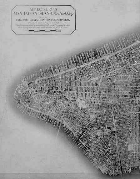 Although by 1920 Fairchild had built an aerial camera superior to anything that had existed previously, the war was over and the military was reluctant to invest in the camera except for two training models. He turned his attention to using his camera system for non-military purposes. In 1921, he took a series of 100 overlapping photographs and made an aerial map of Manhattan Island (Figure 18). This aerial map was his first real commercial success and it was used by several New York City agencies and businesses. In 1922, Newark, New Jersey contracted with him to map its bay area. A Connecticut town discovered 1800 buildings not on its tax rolls using an aerial map, and another town, East Haven wanted to reassess its properties but discovered that to conduct a ground survey would take five years and cost $80,000. Fairchild did the work in 60 days at a cost of $7,000. The Canadian company, Laurentide Paper and Pulp, hired him to survey the large, inaccessible forest regions of Canada. Within the first year, 510 square miles were mapped. Fairchild was demonstrating that aerial photography had many non-military uses and could be a successful venture commercially. By the mid-1930’s, Fairchild Aerial Surveys was the largest and most commercially successful aerial photography company in the United States.