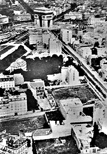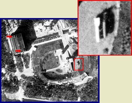 In late 1942 the British Secret Intelligence Service was informed about a new rocket being developed at Peenemunde. An aerial photoreconnaissance plane was sent on June 23, 1943 and obtained the first photo of the V-2 rocket (Figure 19). This aerial photo shows Test Stand VII at the German Testing Center with a V2 rocket on its trailer inside of the test firing area. It also shows possible anti-aircraft gun positions on top of an adjacent building. On August 17 and 18, 1943 the British sent its bombers to Peenemunde and rather than bombing the facility in general, precise targets were selected based on the excellent aerial photography previously obtained. After the bombing a second aerial photoreconnaissance plane was sent to gain photography for assessing the amount of damage (Figure 20).