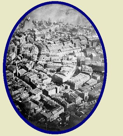On October 13, 1860, James Wallace Black, accompanied by Professor Sam King, ascended to an altitude of 1200 feet in King's balloon and photographed portions of the city of Boston (Figure 4). A cable held the balloon in place. Black, the photographer, made eight exposures of which only one resulted in a reasonable picture. This is the oldest conserved aerial photograph. He worked under difficult conditions with the balloon, which although tethered, was constantly moving. Combined with the slow speed of the photographic materials being used it was hard to get a good exposure without movement occurring. He also used wet plates and had to prepare them in the balloon before each exposure. After descending to take on more supplies, King and Black went up again with the idea of not only covering Boston but also recording the surrounding countryside. However, they encountered other problems. As they rose, the hydrogen expanded causing the neck of the balloon to open more. This resulted in the gas flowing down on their equipment and turning the plates black and useless. In addition, the balloon took off and they landed in some high bushes in Marshfield, Massachusetts, about thirty miles away from their beginning point. It was obvious that the balloon possessed problems in being an aerial platform.