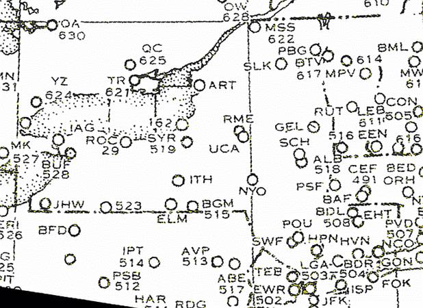 observations using synoptic code on the following New York State map at the