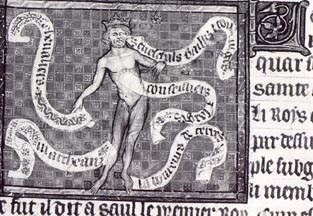 A rare visualization of the body-politic metaphor occurs in the Morgan Avis au roys. Adapted from the iconography of the zodiacal man, a nude, well-porportioned, crowned, and beared male figure represents the physical embodiment of the political body. Inscriptions identify parts of the human body with functions and offices of certain social classes and institutions of government. The resulting hierarchy of political and social values corresponds to the traditional evaluations of the organs of the human body in ancient and medieval anatomical and philosophical texts. For example, occupying the representational and metaphorical top of the hierarchy of the body politic is the king who is its head. As the most distinctive part of the human anatomy, in which the soul, reason, and intelligence, and sensations reside, the head is the ruling principle to which all other parts of the human body and the body politic are subject. Next, associated with the vital human faculties of vision and hearing, the seneschals, bailiffs, and provosts and other judges are compared to the eyes and ears of the body politic. The counsellors and wise men are linked to the essential function of the heart. As defenders of the commonwealth, the knights are identified with the hands. Because of their constant voyages around the world, the merchants are associated with the legs. Finally, laborers, who work close to the earth and support the body, are its feet.