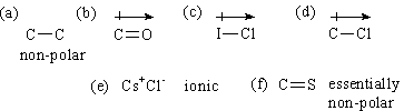 4. For each bond shown below indicate whether it would be non-polar covalent, polar covalent, or ionic; if polar indicate direction of dipole.