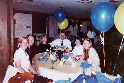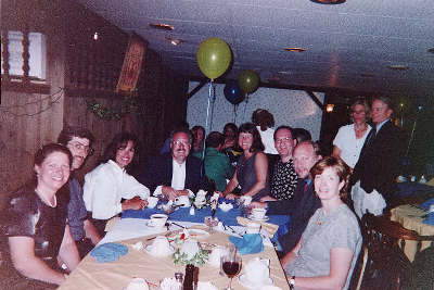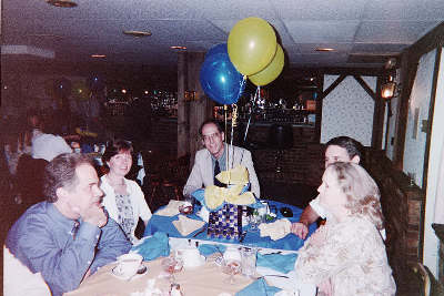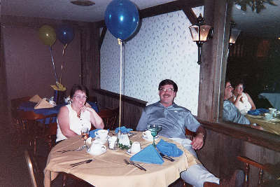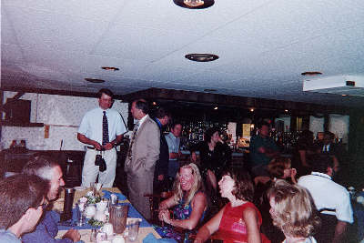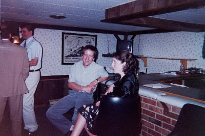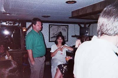 bar, Garett surveys the crowd while Kristy and her husband talk.